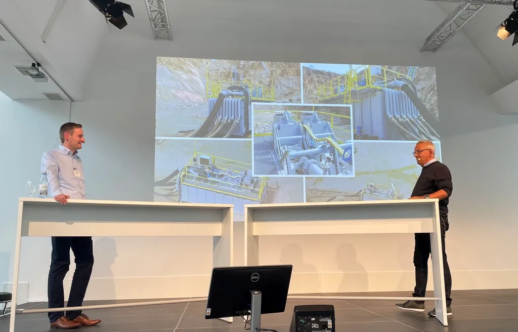 Der technische Leiter unseres Konstruktionsbüros, Marco Oude Lansink, berichtete über die verschleißbeständigen Kreiselpumpen in vertikaler Ausführung. Er zeigte die Vorteile der Kreiselpumpen auf, durch die sich unsere Pumpen von anderen Modellen auf dem Markt unterscheiden. In seiner Präsentation ging er auch auf deren Aufbau, Funktion und Einsatzbereiche ein. Diese speziellen Kreiselpumpen sind in der Lage, schäumende und ausgasende Flüssigkeiten zuverlässig und wirtschaftlich zu fördern, wodurch sich eine höhere Effizienz der Anlagen erreichen lässt. Des Weiteren stellte er die im Laufe der Zeit bei Habermann entwickelt und patentierten Sonderwerkstoffe vor. Die sich in Kombination dieser Werkstoffe mit unseren Pumpen ergebenden Vorteile, können Sie auch in der angehängten Präsentation nachlesen.